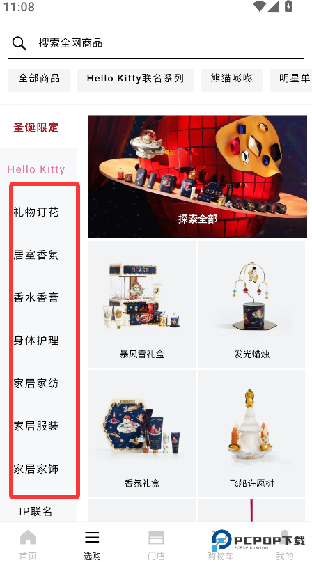 2、根据个人需求浏览或通过分类筛选目标商品,如选择花艺、家居、香氛等具体品类。
