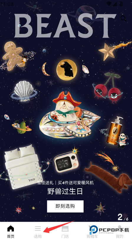 1、找到并点击"选购"功能入口,进入平台商品陈列主页面。