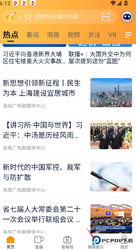 1、找到并点击“融媒看点”功能入口,进入资讯聚合页面。