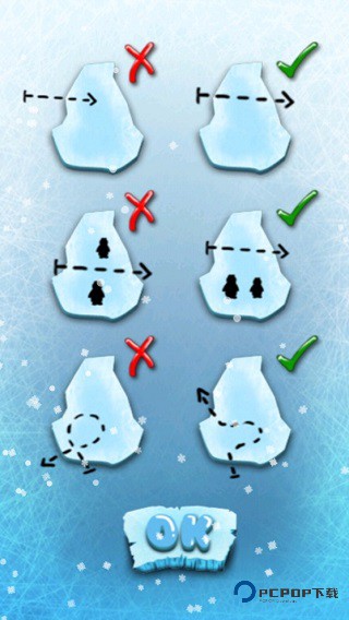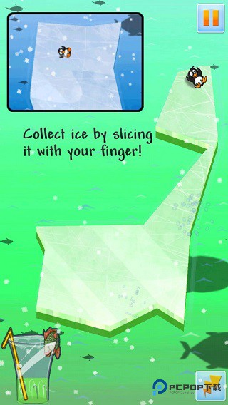 2、关键是要沉得住气!盯着这群呆萌小家伙滑到冰面中下部的时候,对着上半部分果断划一刀直接清空。再看左边冰块,残留越少得分越高,所以每次切割前记得瞄一眼剩余空间。