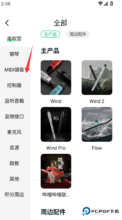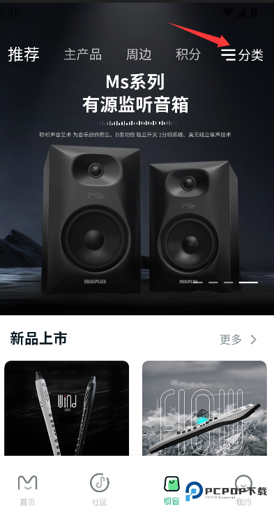 1、找到并点击“分类”导航入口,进入按乐器类型划分的浏览页面。