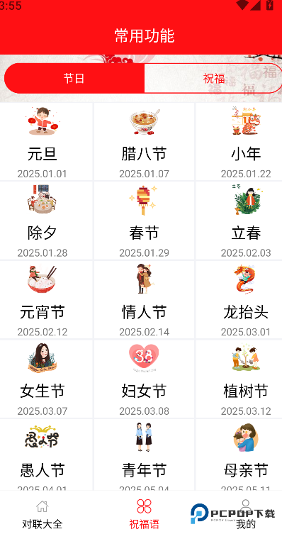 2、在祝福语页面,浏览按节日、场合或对象等维度划分的多种祝福类型,通过点击选择最符合当前需求的分类。