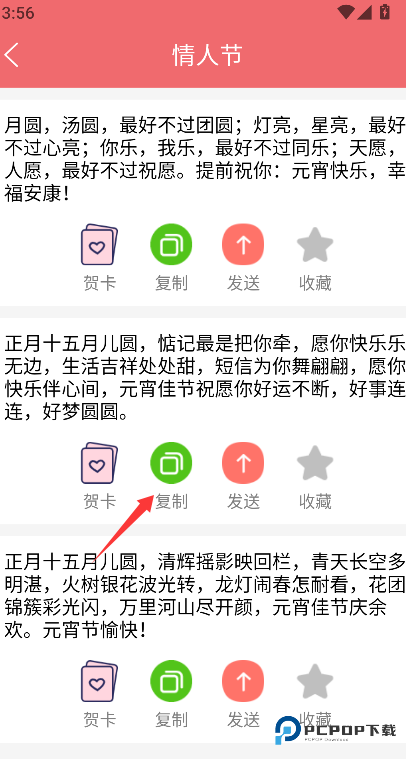 3、点击任意一条祝福语右侧的“复制”按钮,可供直接粘贴使用。