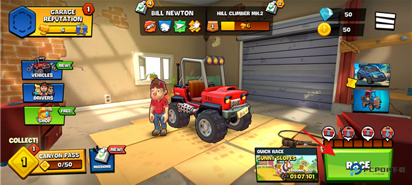 想爬得更稳更快?尽情改造爱车吧!升级引擎马力、更换抓地轮胎、强化避震悬挂…… 每个配件都能提升攀爬能力和耐用度,打造专属高性能越野车!