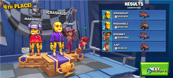 7、比赛结束会根据你跑完的时间得出名次,看看表现如何?看完结果点 NEXT 就能退回主界面。