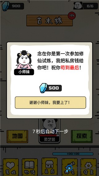 11、顺利完成新手教学关,恭喜你获得 500 灵石的启动资金;
