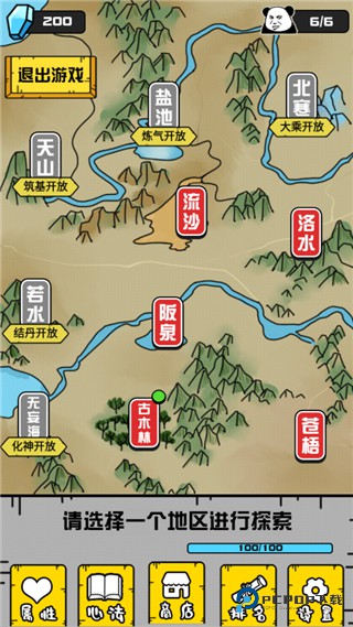 3、你会被传送到八荒世界的一个角落,初始地图上有像 “古木林” 这样的地点,随意点一个感兴趣的进去瞧瞧;