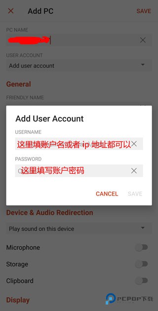3、PC name 栏:填电脑改名后的名称 或 IP 地址→ 查 IP:电脑按 Win+R → 输入cmd回车 → 黑窗口里输ipconfig → 找「IPv4 地址」那串数字;
