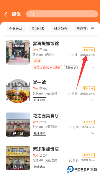 3、选定一家美食店,戳下“平台专送”的瞬间,仿佛听到了厨房锅铲碰撞的序曲,一场美味的配送交响乐即将开幕。