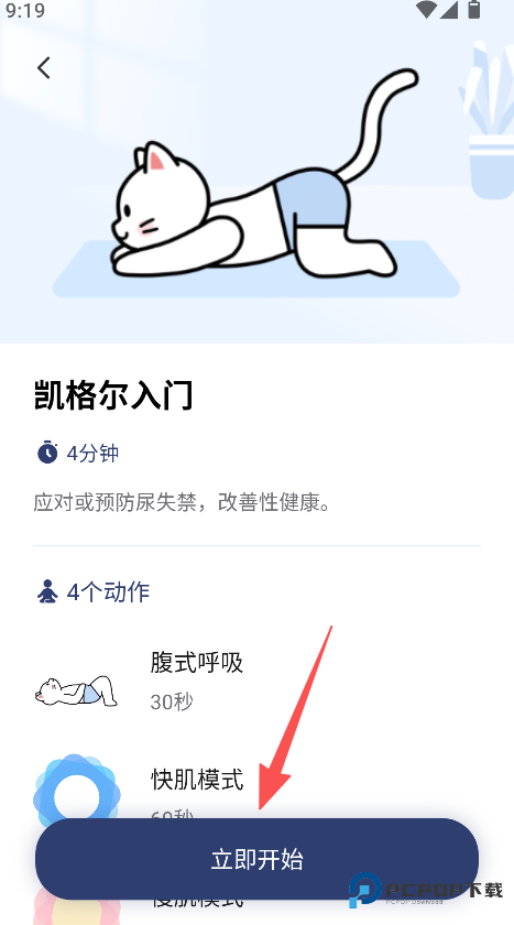 2、支持训练示范查看功能,跟随卡通动作示范,完成盆底肌训练的动作学习与实践环节。