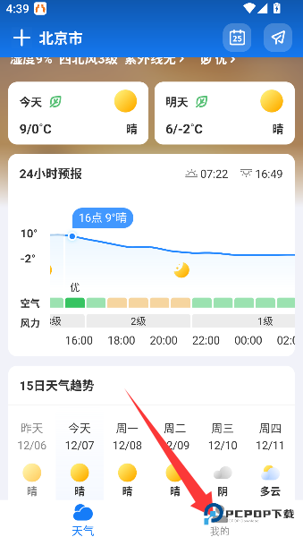 1、打开“我的”入口,宛如开启个人天气藏宝室的门户,其中收纳了所有气象相关的设置与珍藏。