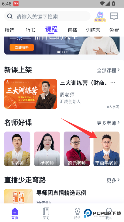 2、搜索或直接浏览的方式,从众多课程中寻找并选择特定名师主讲的目标课程。