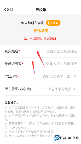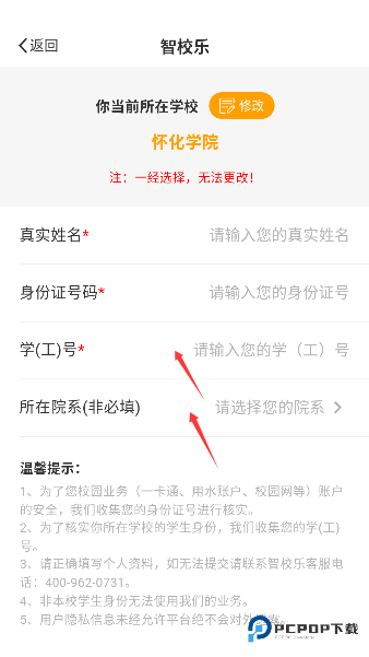3、再准确输入学号或工号并选好院系,就像领到了一张专属的校园电子通行证。