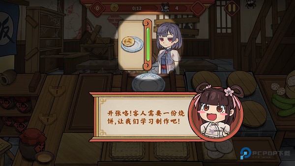 开张后的第一件事,就是学习美食制作的烹饪手法,如图,顾客旁边的图示是订单需求,玩家需要根据订单完成美食的制作。