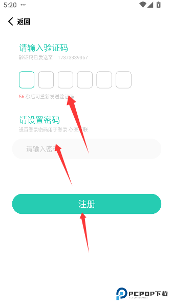 3、把短信里那串数字密码请进验证码框,给新家设置一道安全门锁,点击注册就正式入住啦。