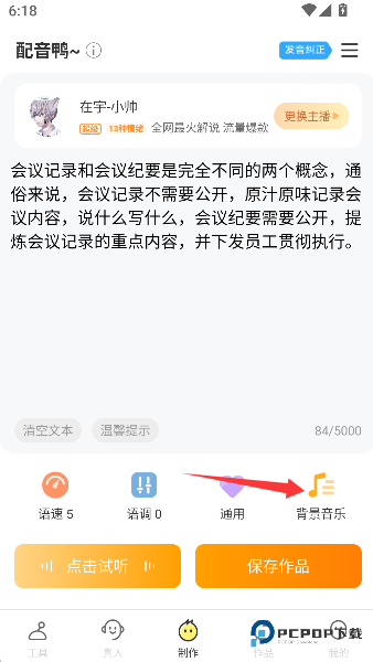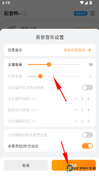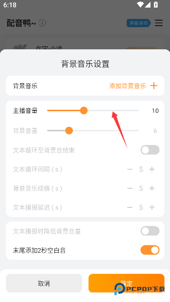 2、滑动主播音量调节杆,如同掌控一位虚拟主播的麦克风强弱,确保人声清晰突出又不过于突兀。