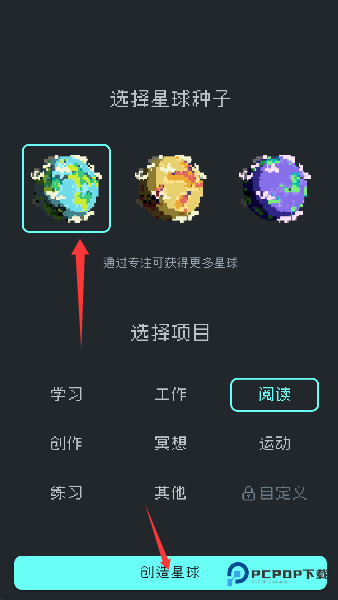 1、在浩瀚的星图里挑一颗顺眼的星球种子,轻轻一点,你便成了宇宙菜农,开始播种专属的专注小天地。