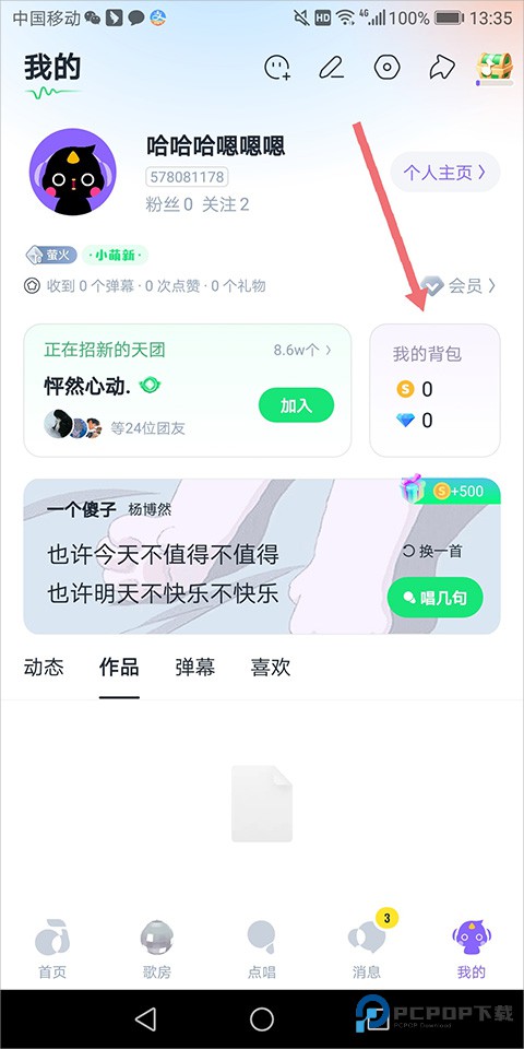 1、打开 APP 后,点 "我的" 进入 "我的背包"。