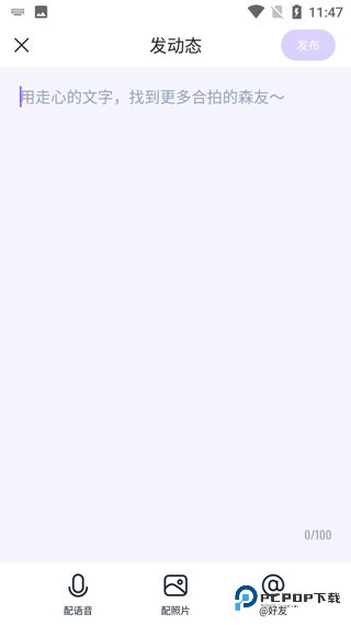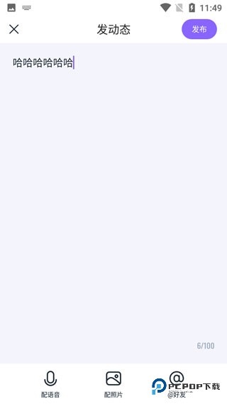 2、填写你想要的文字内容,自由添加配音、图片或 @好友。