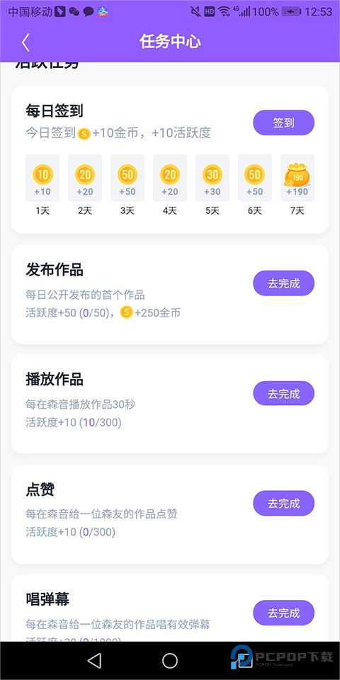 2、通过任务积累金币:签到、发布作品、给他人点赞都能得金币,金币攒够可兑换钻石。