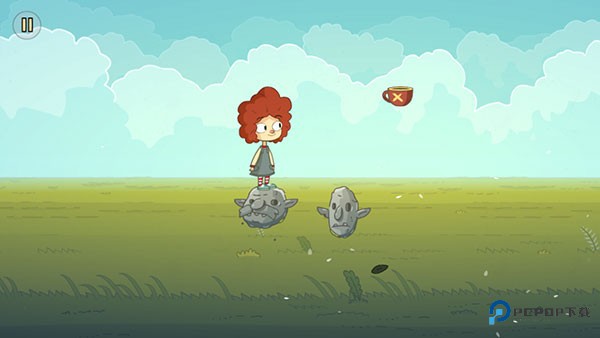 5、继续往右探索,交替点击地上左右两侧的石头(可能需要多次尝试位置),然后抬头点击空中出现的茶杯图案。