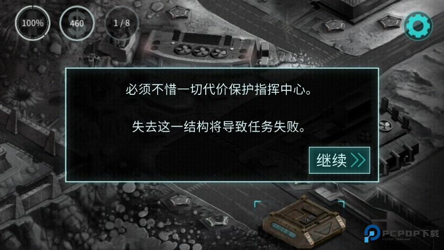 3、核心目标:记住你的首要任务是保护中央的 “指挥中心”。进入指挥中心的 “研究” 菜单,可以升级武器或强化自身装甲。