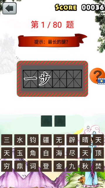 1、打开《三年级成语闯关》软件,在主界面点击开始闯关,自动进入第一关卡的答题页面。