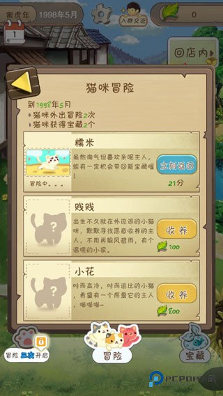 后院主要是猫咪的地盘。可以让猫咪出门冒险,它们回来时会带回有用的猫薄荷和可能有惊喜的宝藏。这些宝藏能给杂货铺带来收入的加成哦!