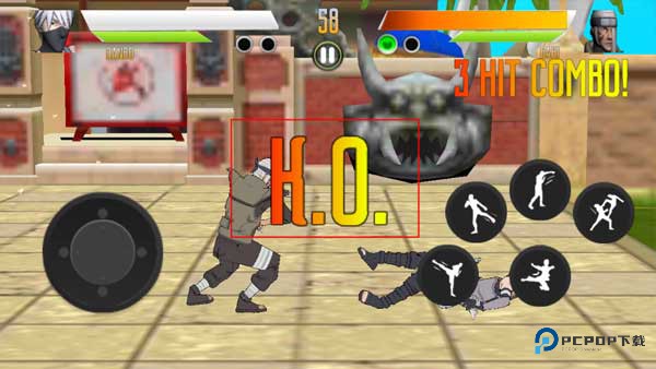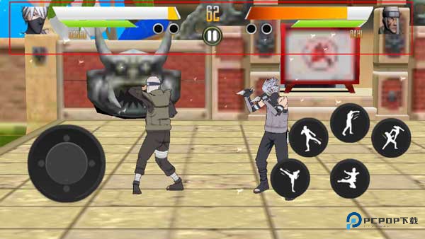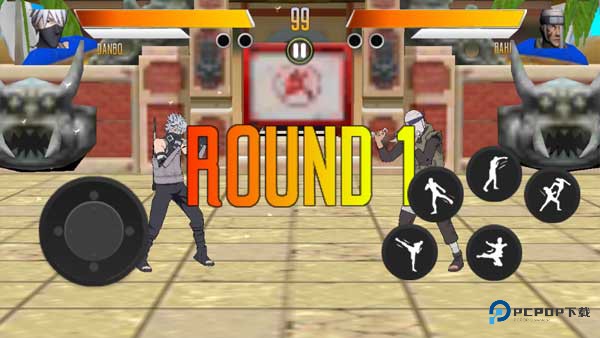 3、战斗通常是两个回合制,屏幕上的虚拟方向键控制角色移动,攻击键用来施展各种招式打中对手。