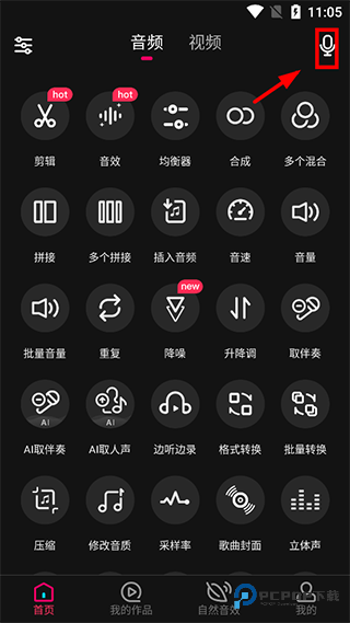 1、在 app 首页找到 “话筒” 图标按钮,点击它!
