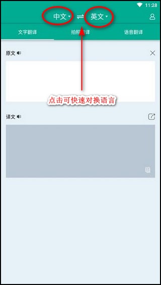 1、文字翻译:输入你要翻译的文本即可进行翻译,在上方选择语言及翻译语音的类型就好啦;