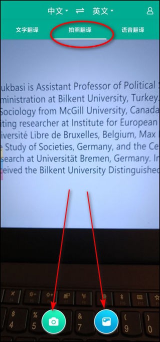 2、拍照翻译:用手机摄像头对准你要翻译的语言或者直接调用手机内存里的图片也能进行语言翻译;