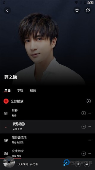 3、页面立即展示该歌手的全部单曲与专辑。