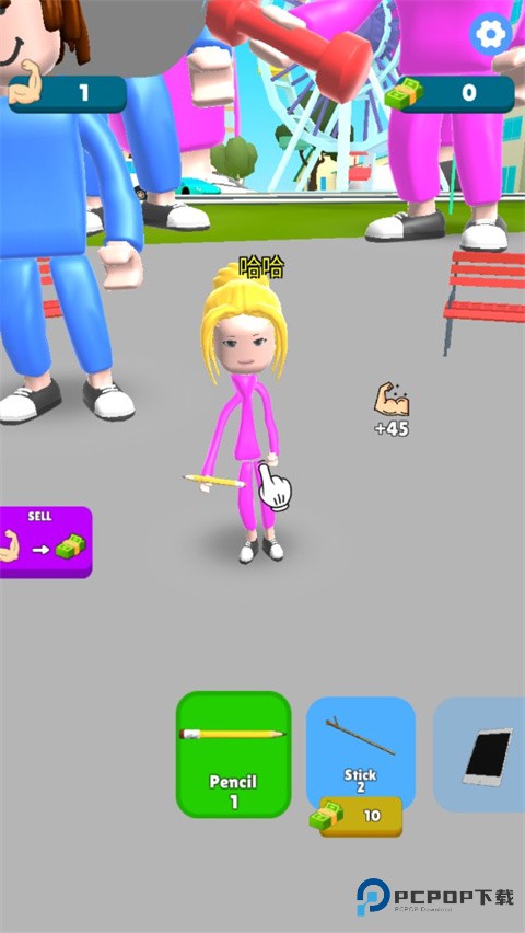 2、疯狂点击屏幕上的人物角色!每次点击都能立刻增强手臂力量,看它肌肉鼓胀变强,点击越多力量越猛哦!