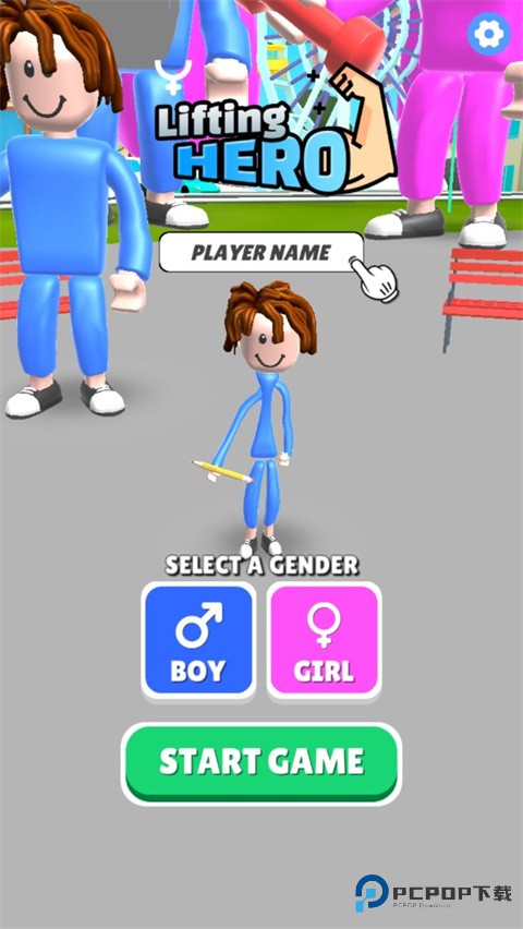 1、启动肌肉英雄游戏!一进主界面,记得给自己输入一个专属昵称,顺便选择角色的性别,开始打造你的健身传奇吧!