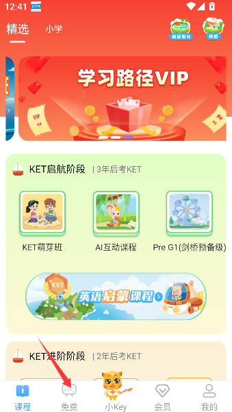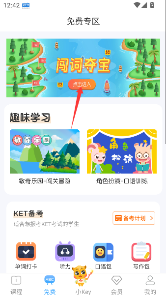 1、点击那个醒目的免费按钮,就像拿到一张通往知识宝藏的邀请函,开启这段奇妙的英语学习之旅。