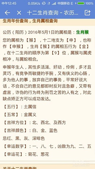 中华万年历老黄历查询看每日属相方法