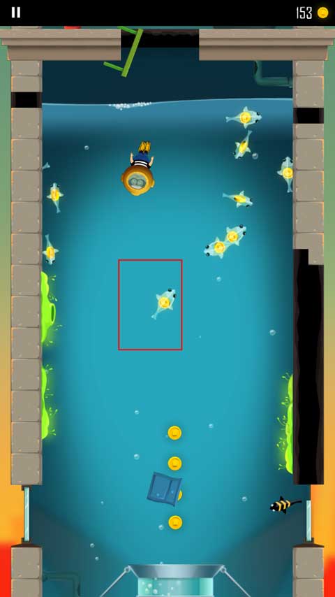 7、有一层玩家会进入到水池里,这里面的小鱼里面会有金币,玩家将小鱼全部吃完之后就可以从底下的管道出去。