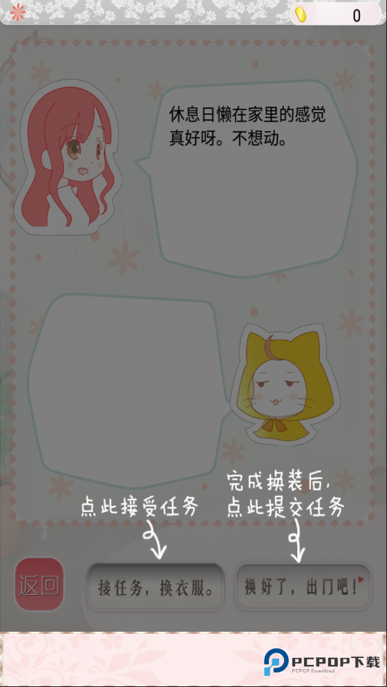 3、领了任务就得干呀,换衣服是重点目标,按提示来。
