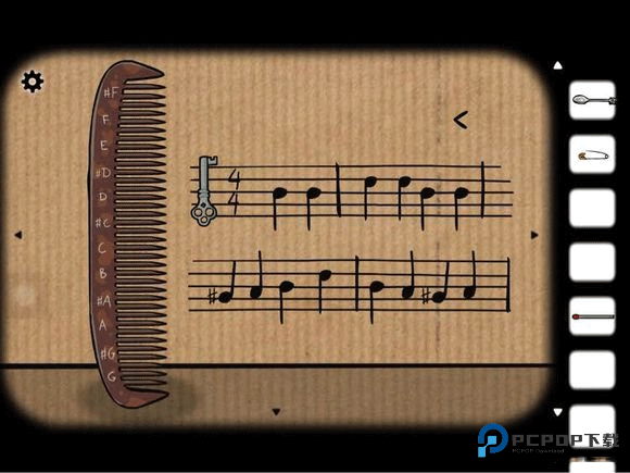 2、进入梳子场景演奏是关键。拿起梳子,会进入一个新的场景,这里有一把小竖琴似的东西。按照提示,参照物品栏那张纸条上的乐谱符号去弹奏它。这一步看着简单,实际操作时得仔细点,手指得按准对应的点,因为音符的顺序和位置容易点错,一旦错了就得不到钥匙了。弹对了,钥匙会出现在物品栏里。