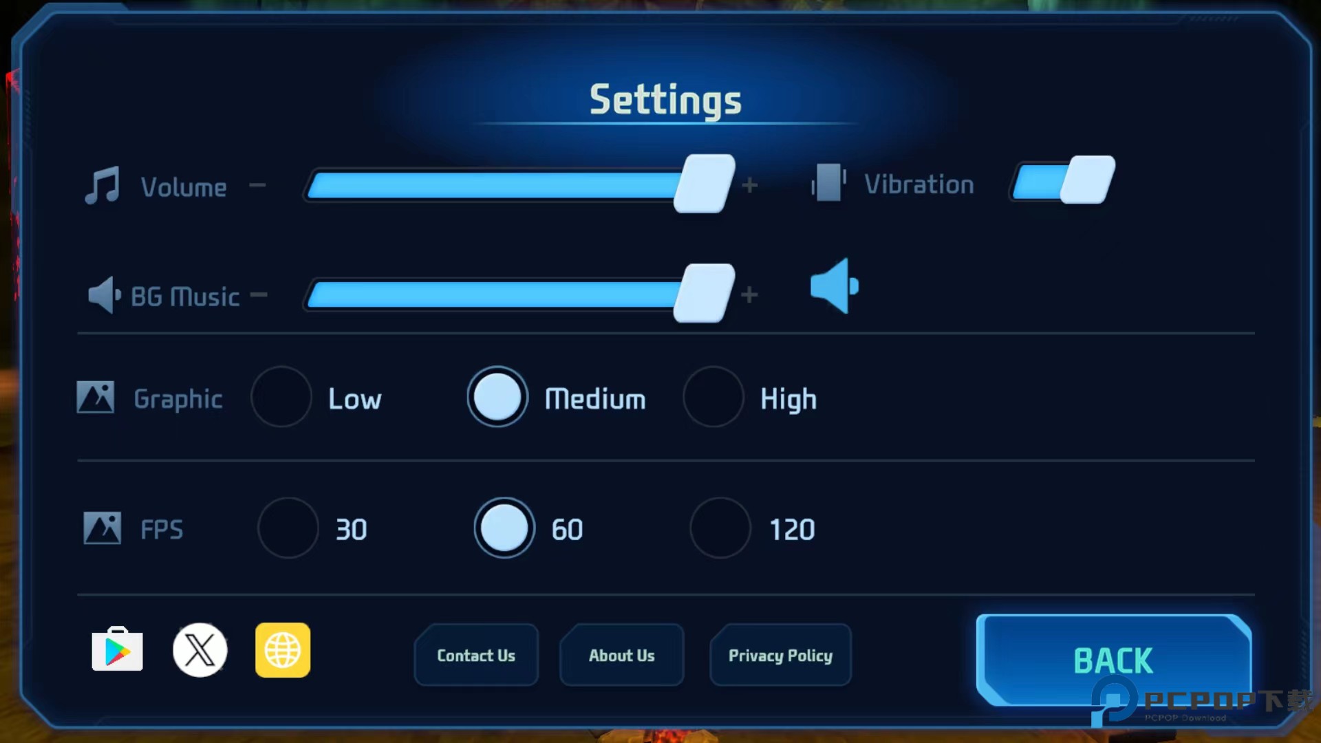 2、在设置面板里,调整好你喜欢的游戏音效大小、背景音乐音量、画面精细程度(画质)以及画面流畅度(FPS)。
