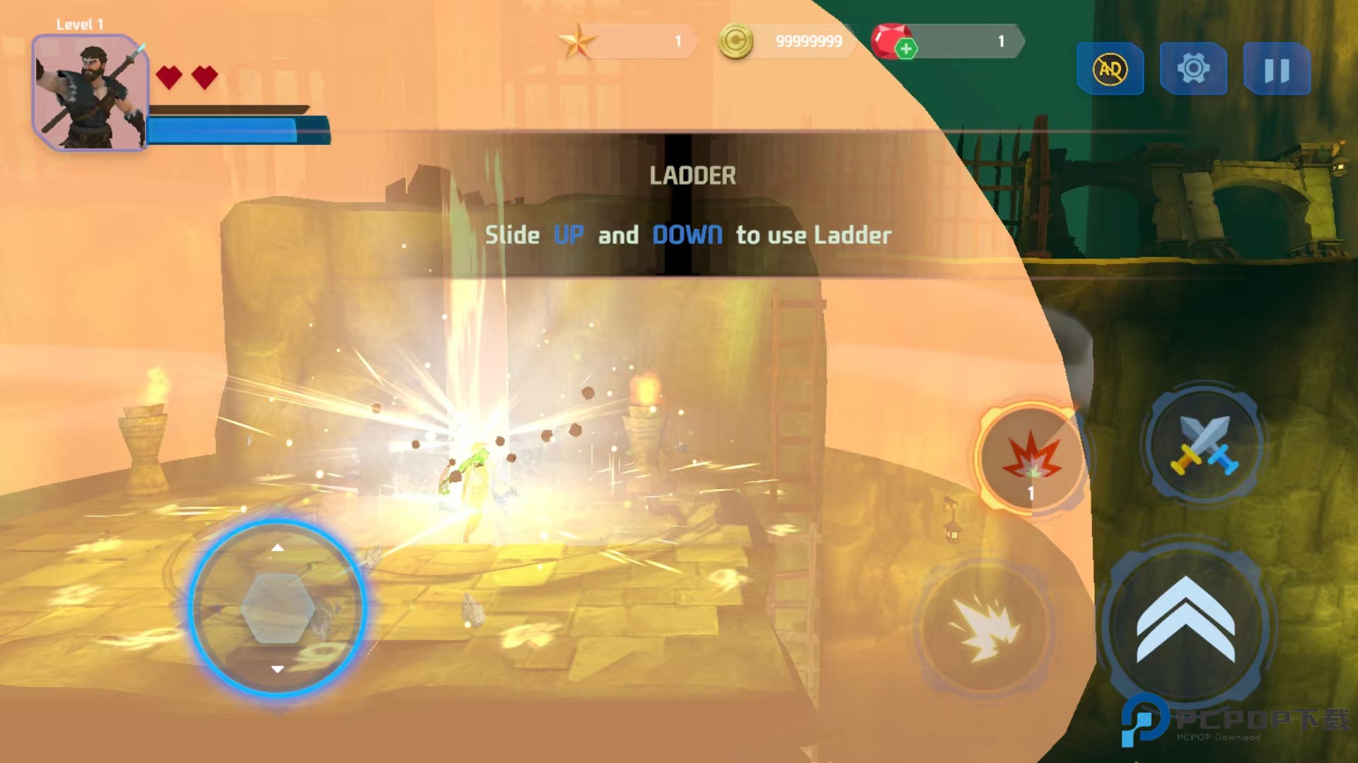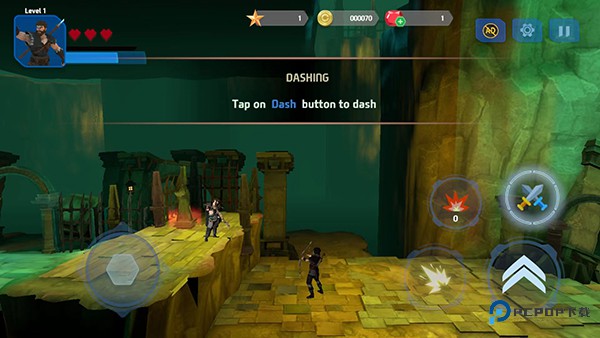 5、屏幕右下角集中了你的主要操作按钮:发动攻击、使用特殊技能、紧急冲刺、以及跳跃。