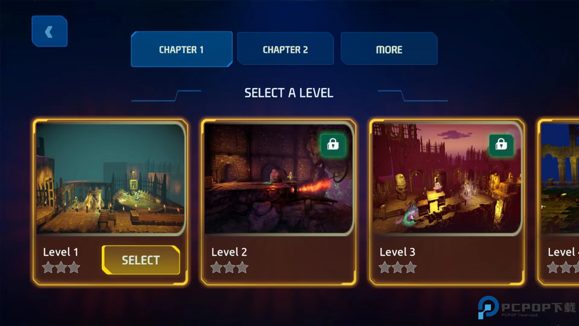 3、搞定设置后回到主界面,你会看到琳琅满目的游戏关卡。记住哦,需要通关前一关才能玩新关卡。现在,选好【Level 1】,按下【SELECT】按钮开始第一关。