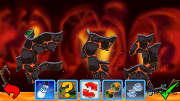 5、开始对战了!轮到你时,操纵你的小虫子走到合适位置,瞄准敌方虫子,然后点击武器按钮(比如默认的火箭炮)开火!