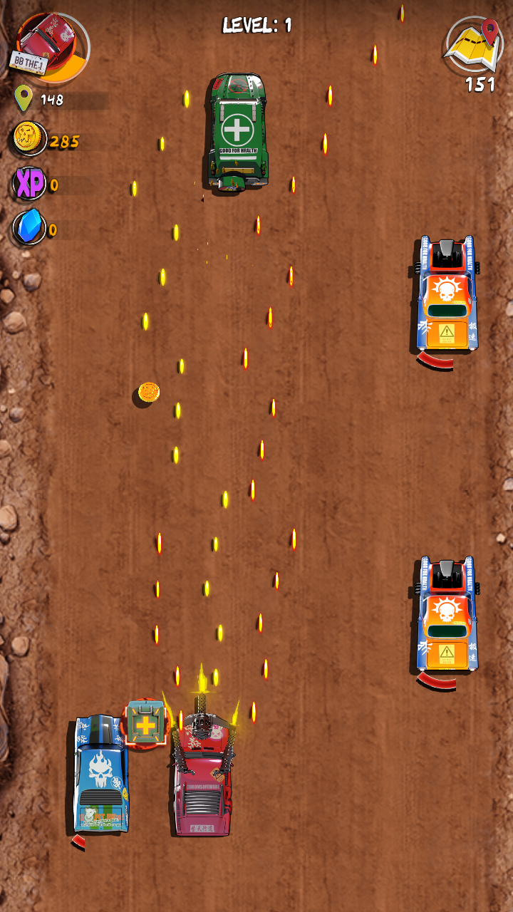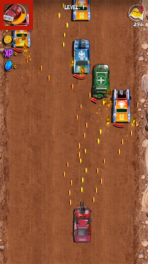 3、击败游戏中不同的敌方车辆,会掉落不同的游戏道具,例如金币、经验、医药箱、攻击道具等等,合理利用道具能够如虎添翼。