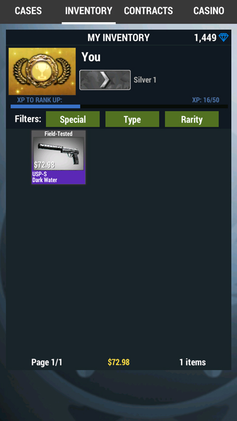 2、库存选项卡 - 您获得的所有武器都将存储在这里,使用此选项卡可以查看皮肤并删除不需要的武器。