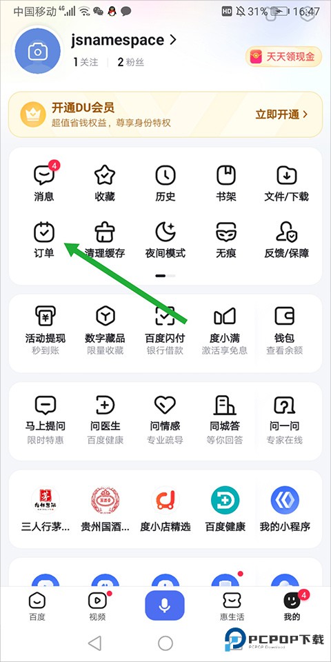 在 “我的” 页面里,找到 【订单】 并点击进入。