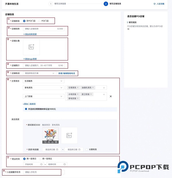 这部分填两类信息:“商户信息” 和 “店铺信息”。