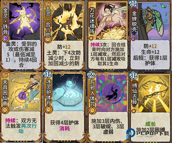 核心玩法:每轮拿牌组卡组,随机与另一玩家对战。战斗按修为高低决定先手(平修为随机),轮流出牌(每动出一张牌),一方生命归零结束战斗,结算后再开下一轮。