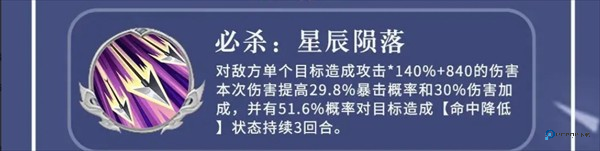 他的核心杀伤技叫 星辰陨落(必杀),效果超猛。